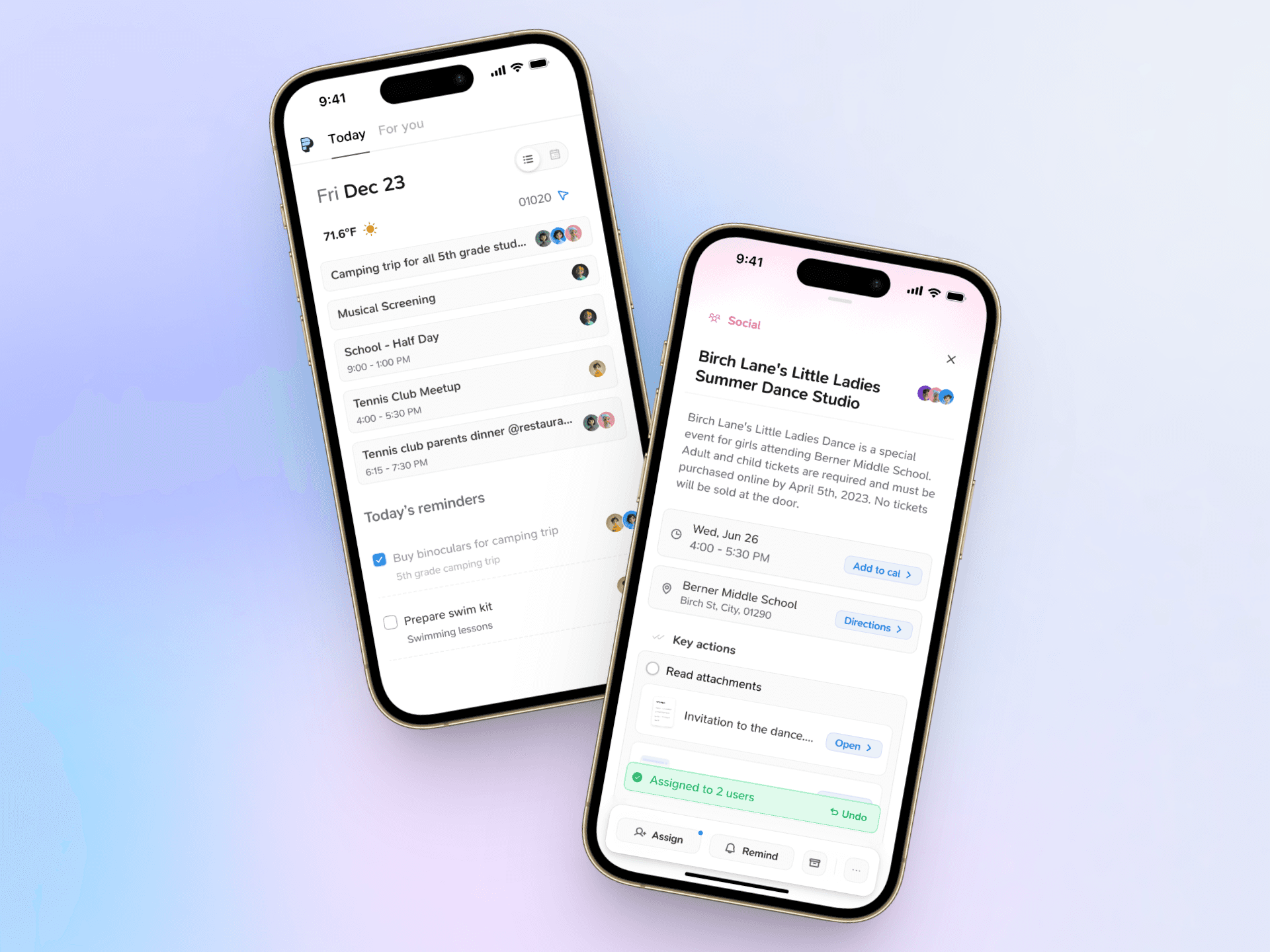 Simplified item cards by removing overwhelming text and focusing on key actions: calendar integration, reminders, and task assignment